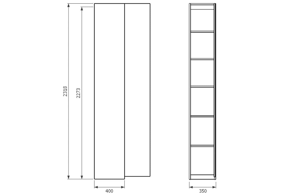 - Kaapin mitat (L x S x K): 350 x 400 (+ ovi) x 2318 mm.